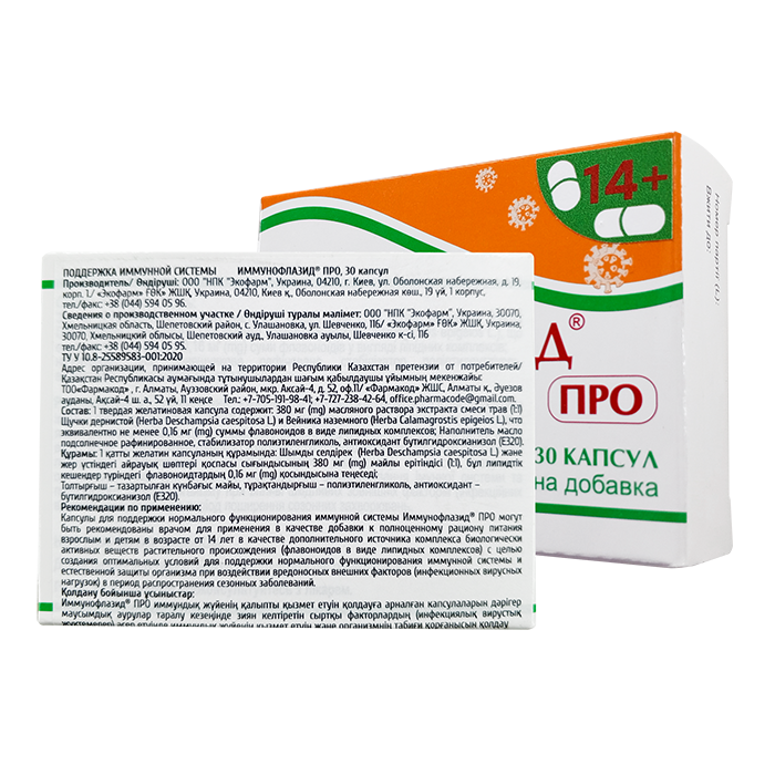 Капсулы для поддержания нормального функционирования иммунной системы Иммунофлазид® ПРО могут быть рекомендованы врачом для применения в качестве диетической добавки к полноценному рациону питания взрослым и детям старше 12 лет, как источник комплекса биологически-активных веществ растительного происхождения (флавоноидов в виде липидных комплексов) с целью создания оптимальных условий для поддержания нормального функционирования иммунной системы и естественной защиты организма при воздействии вредных внешних факторов (инфекционных вирусных нагрузок) в период распространения сезонных заболеваний.