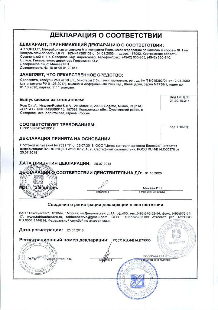 Инструкция по применению Селлсепт 250мг