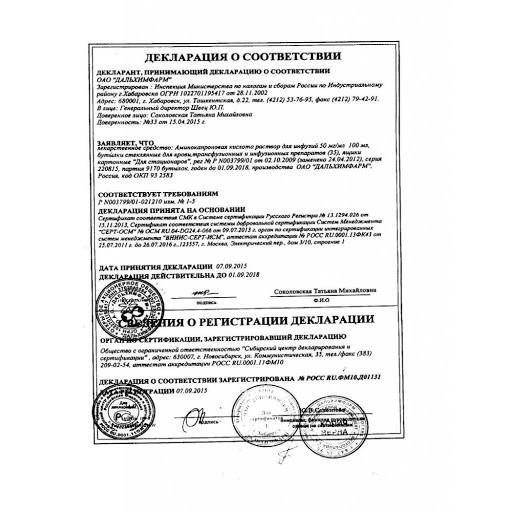В раствор аминокапроновой кислоты не следует добавлять никаких лекарственных средств.