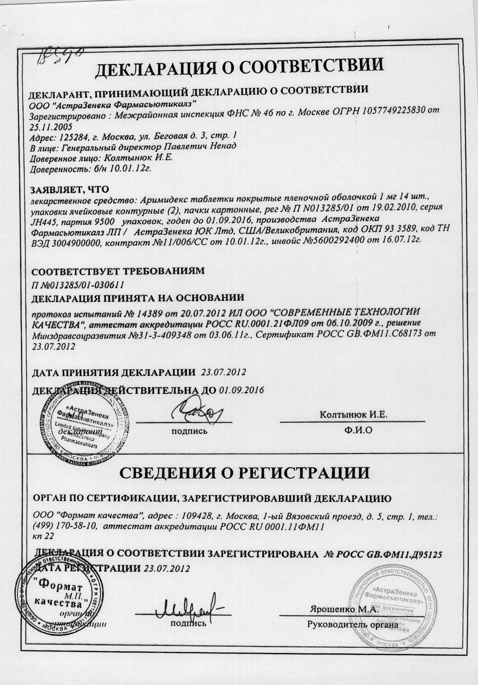 Срок годности препарата Аримидекс